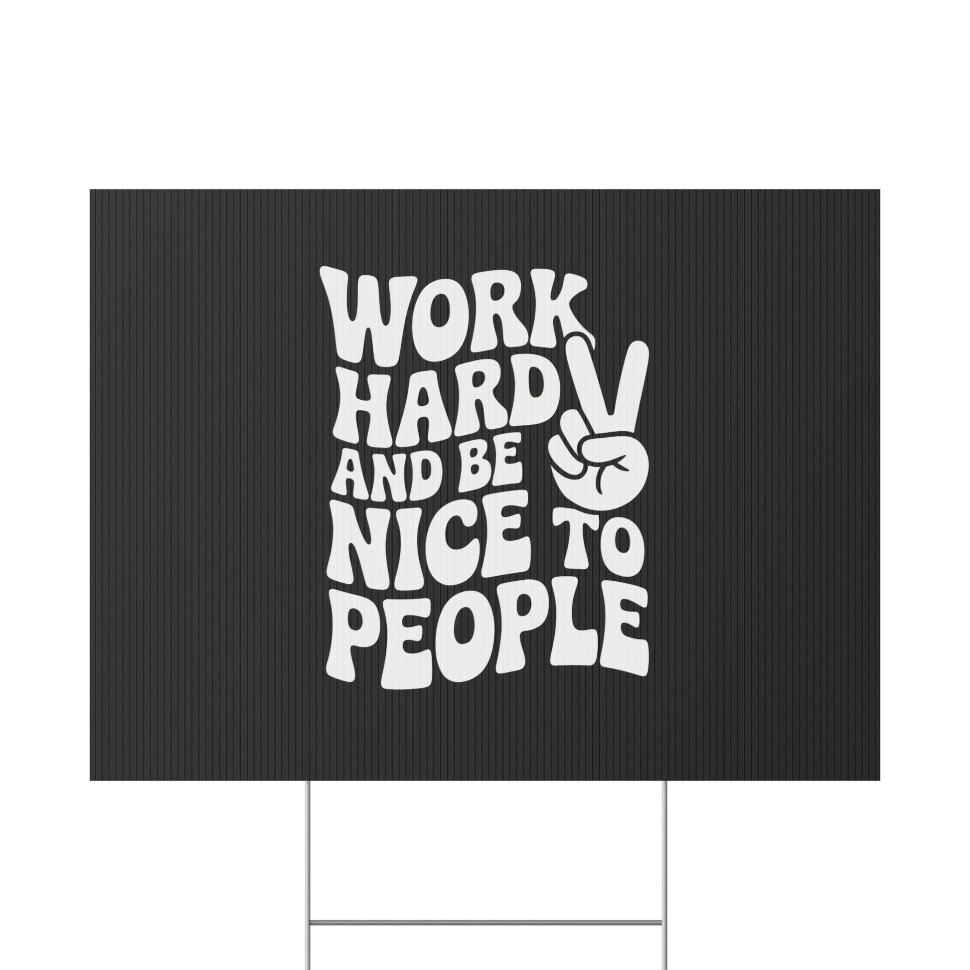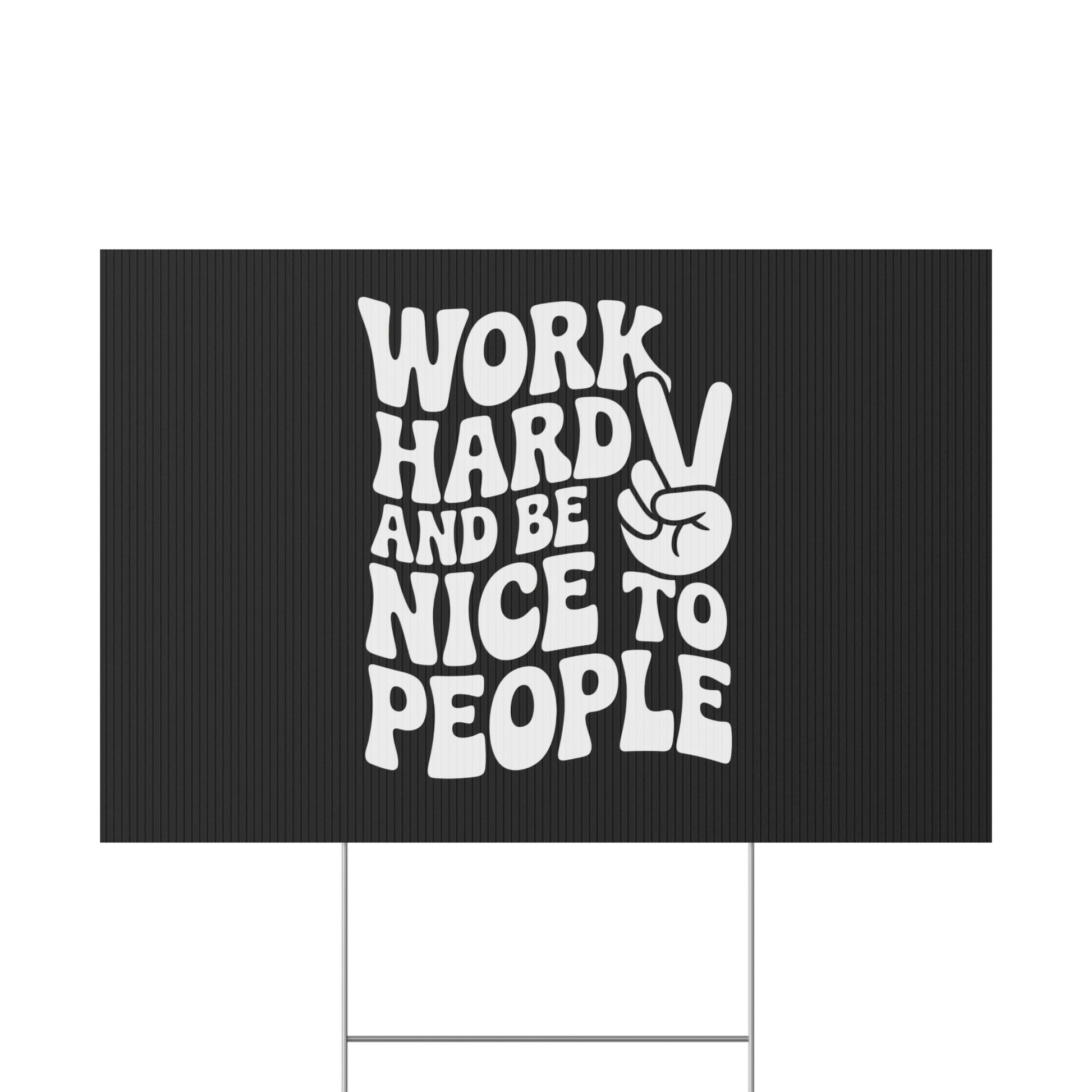 Black Work Hard & Be Nice to People Yard Sign
