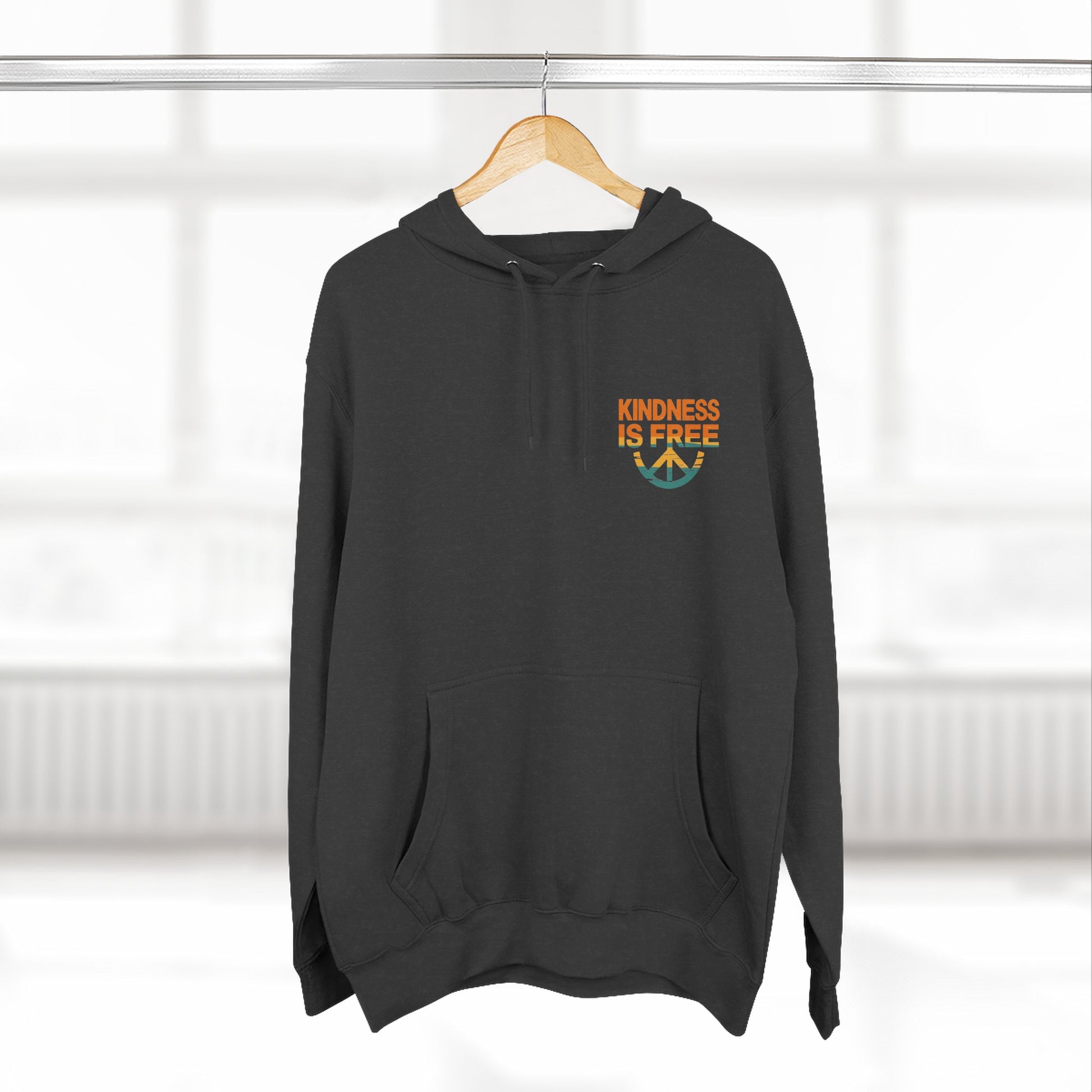 Made to inspire smiles, warmth, and connection — because kindness looks good on everyone.This cozy Three-Panel Fleece Hoodie is designed to bring warmth and comfort to your everyday life. Its soft fabric makes it perfect for lounging at home or heading out on a chilly day. The spacious kangaroo pocket will keep your hands warm while adding a relaxed vibe to your look. Ideal for anyone who appreciates style and comfort in their wardrobe, this hoodie is great for casual outings, cozy nights in, or even as a gift for friends and family. It’s perfect for holidays, birthdays, or simply to celebrate the concept of kindness with its adorable message. Whether for yourself or a special someone, this hoodie is like a warm hug that you can wear!